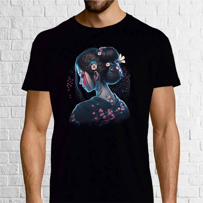 Tricou bărbat – Gheișă. Pentru iubitorii producțiilor japoneze anime si manga propunem o serie de tricouri cu personaje care imită acest stil