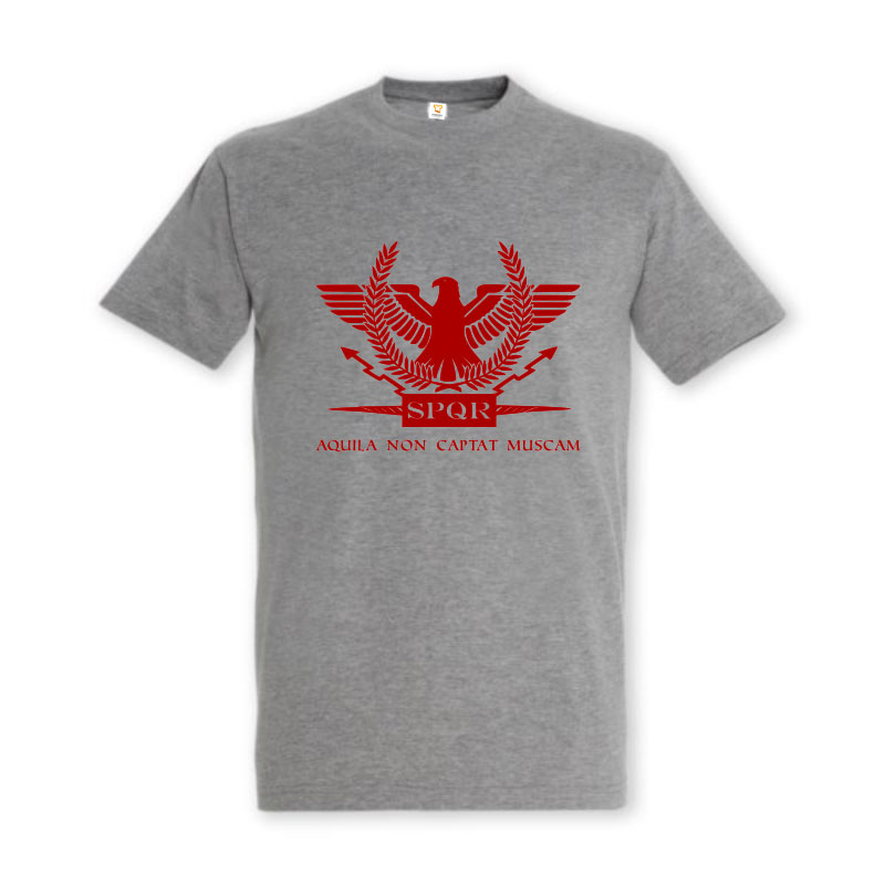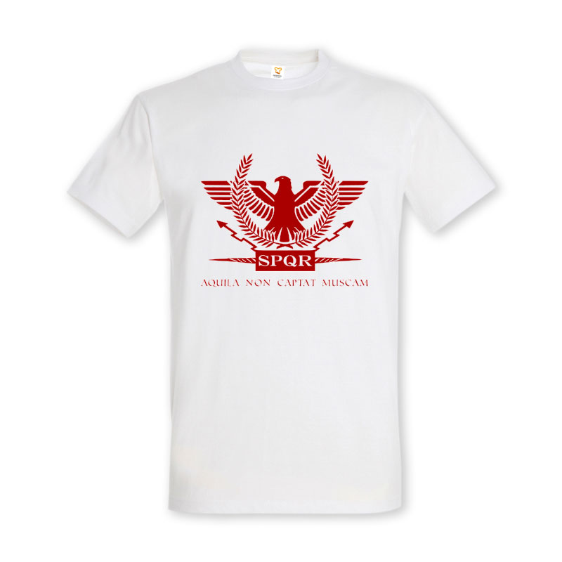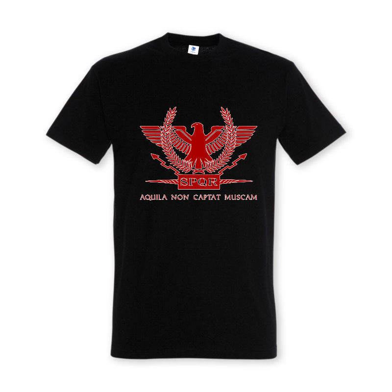 Tricou pentru barbati imprimat cu aquila legiunilor romane si citat latin „Aquila non capit muscam”. Cauta in categoria citate latine si alte tricouri pentru barbati, dar si pentru femei cu mesaje in latina.