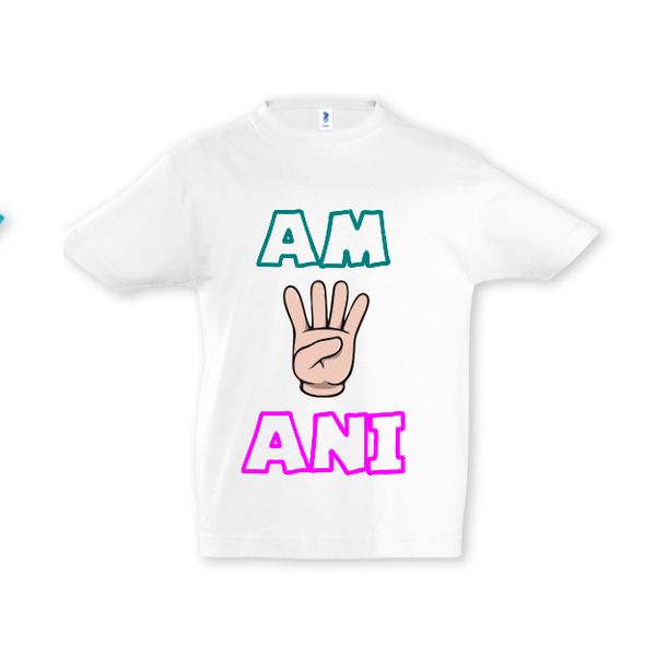 Tricou copii AM 4 ANI este tricoul copiilor care învață la grădiniță să numere pe degețele câți ani au și sunt mândri de asta. Tricoul este special pentru copiii isteți și simpatici.