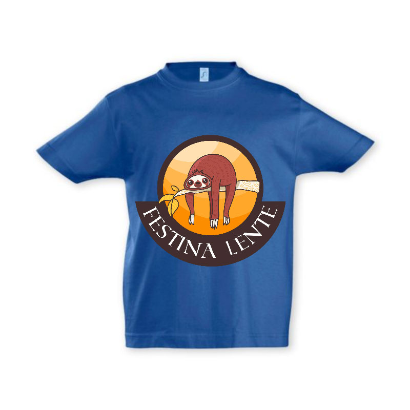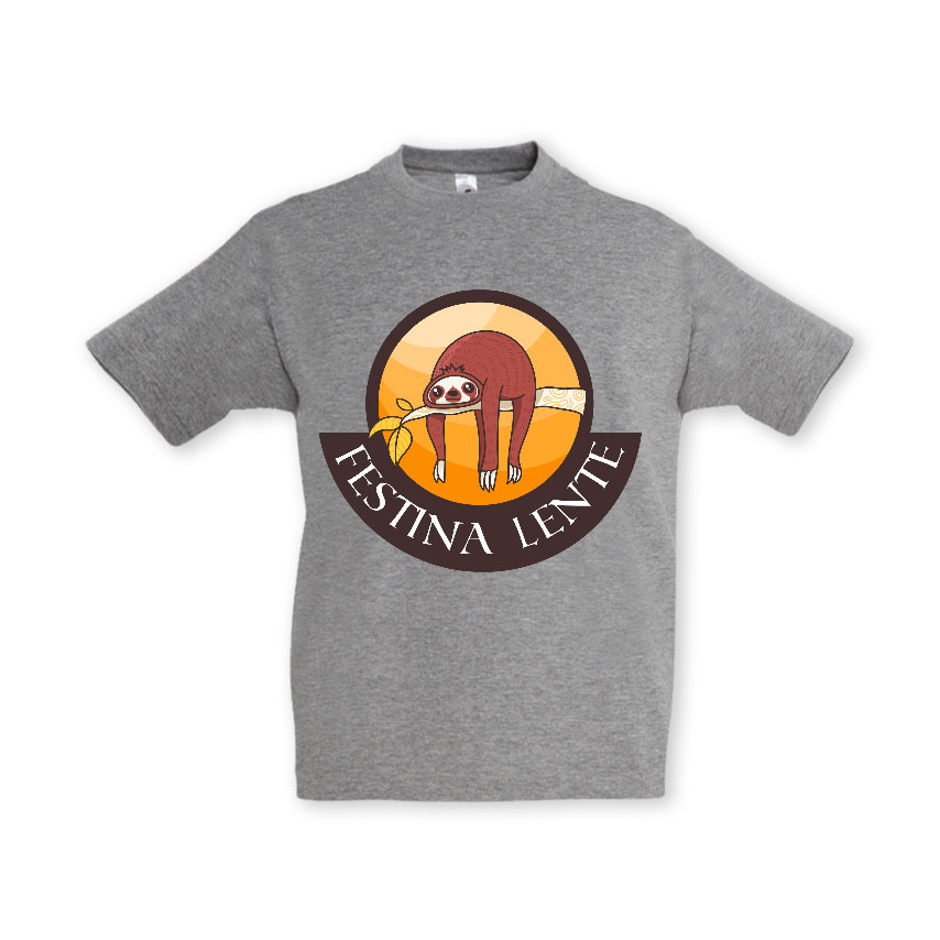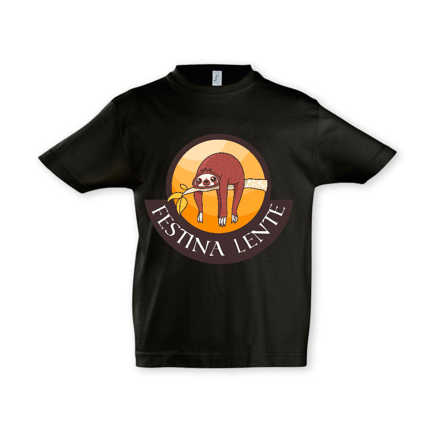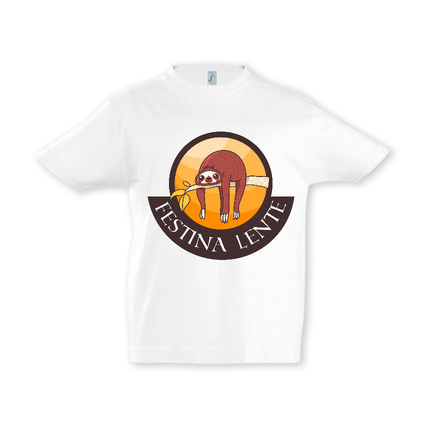 Am dedicat feritelor si baietilor pentru care graba n-a fost niciodata o prioritate un tricou copii imprimat cu expresia latina Festina Lente (Grăbește-te încet!)