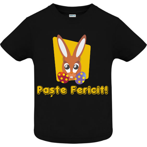 Tricou copii – Iepuraș de Paște cu ouă – este un tricou din bumbac imprimat digital cu vopsele pe bază de apă sigure pentru orice vârstă