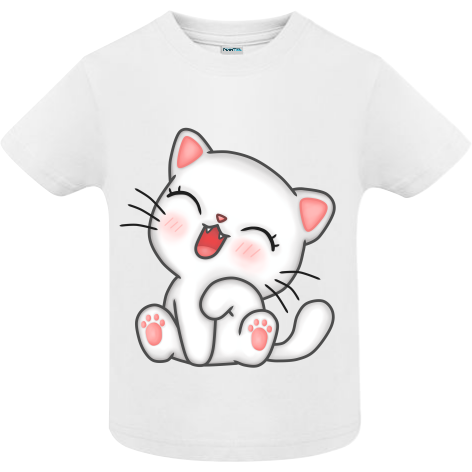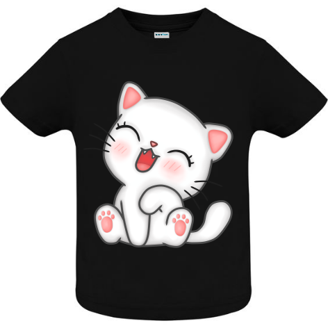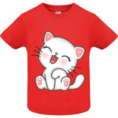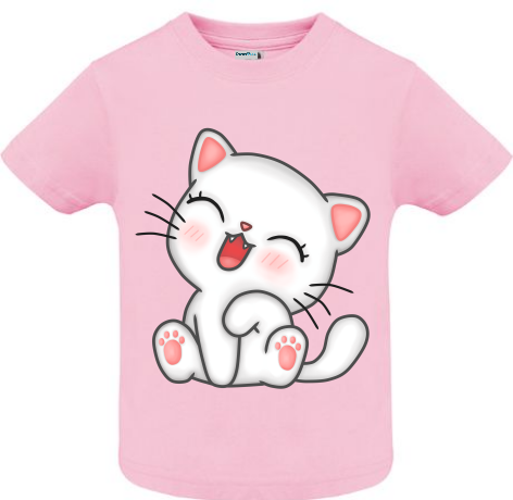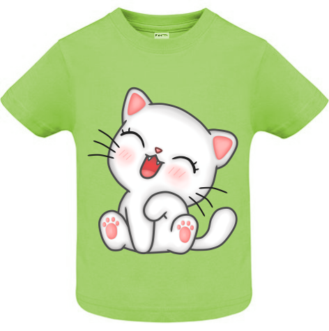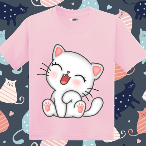 Tricou 100% bumbac pentru copii imprimate digital cu vopsea ecologică pe bază de apă cu grafică reprezentând o pisicuța veselă