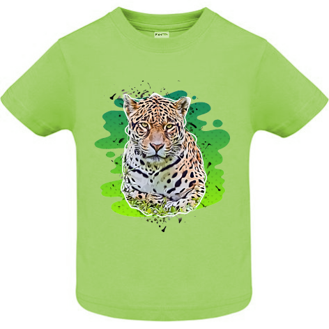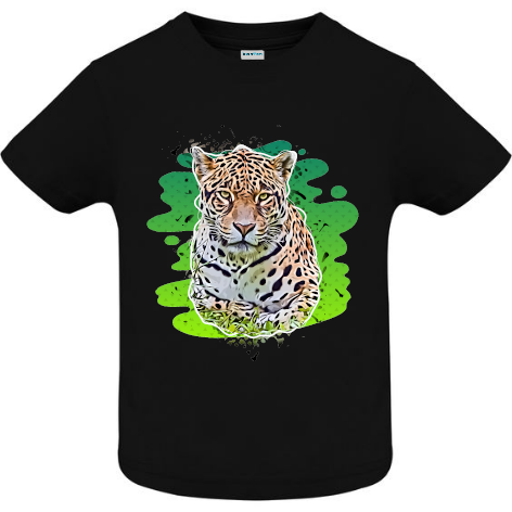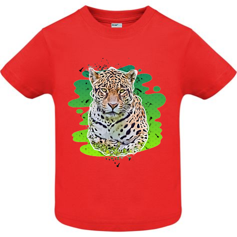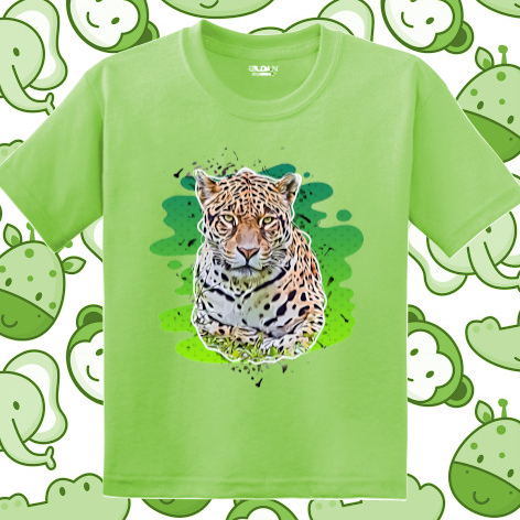 Tricou copii – Un leopard – este un tricou din bumbac imprimat digital cu vopsele pe bază de apă sigure pentru orice vârstă.