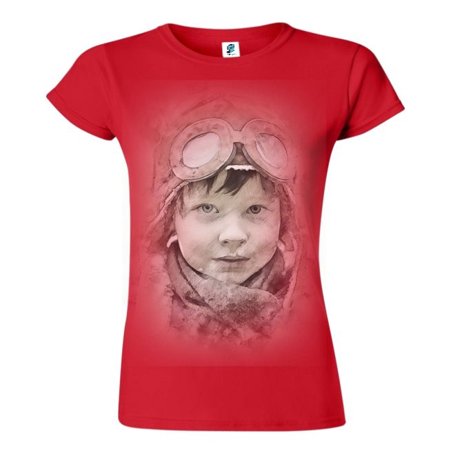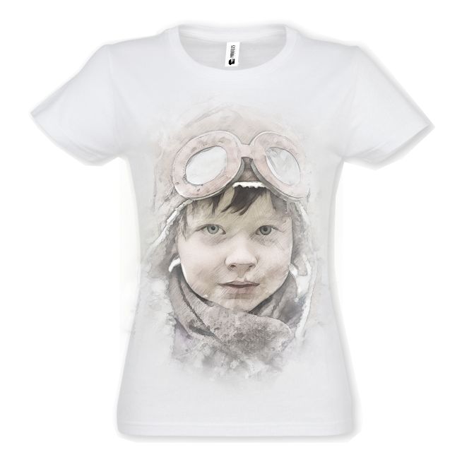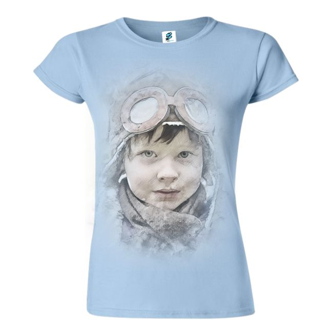 Micul aviator este un tricou damă imprimat cu chipul unui copil ce poartă cască și ochelari de aviator ce te duce cu gândul la Micul prinț.