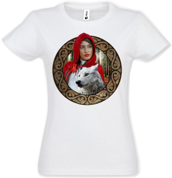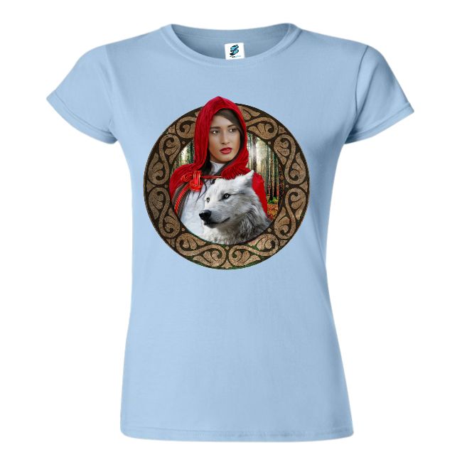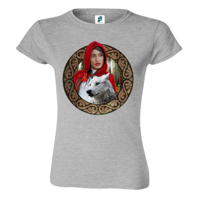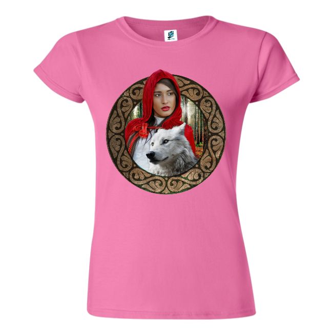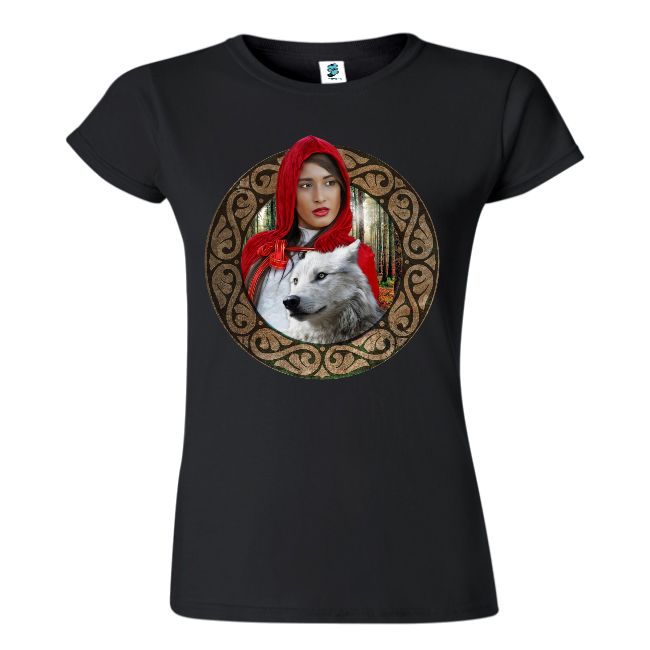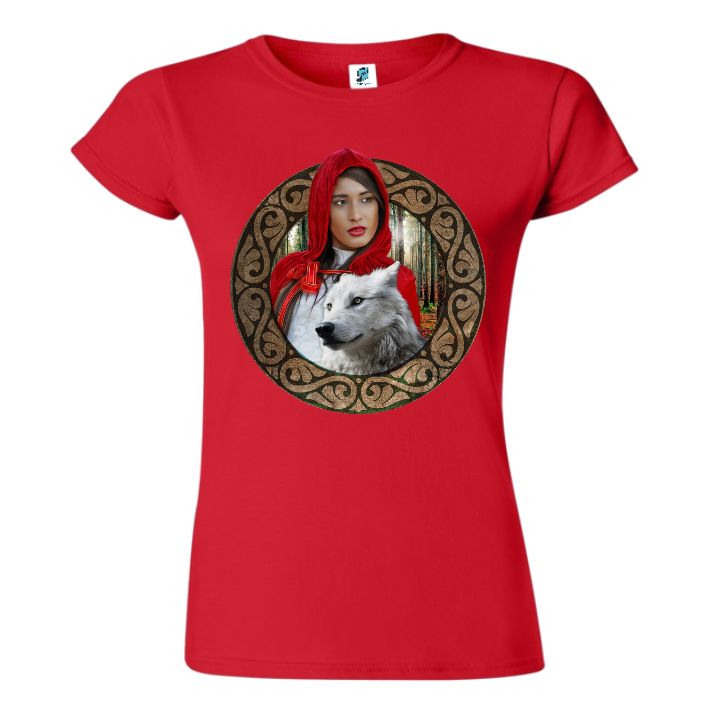 Tricou regular din bumbac pentru damă imprimat cu personajul din povestea ce ne-a fermecat copilariile tuturor, Scufita Rosie, in diverse culori și mărimi.